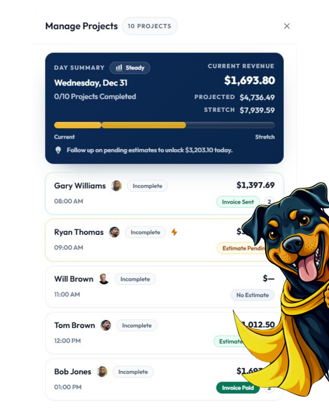 Scheduling, estimates, invoicing, and crew management — all from one app.