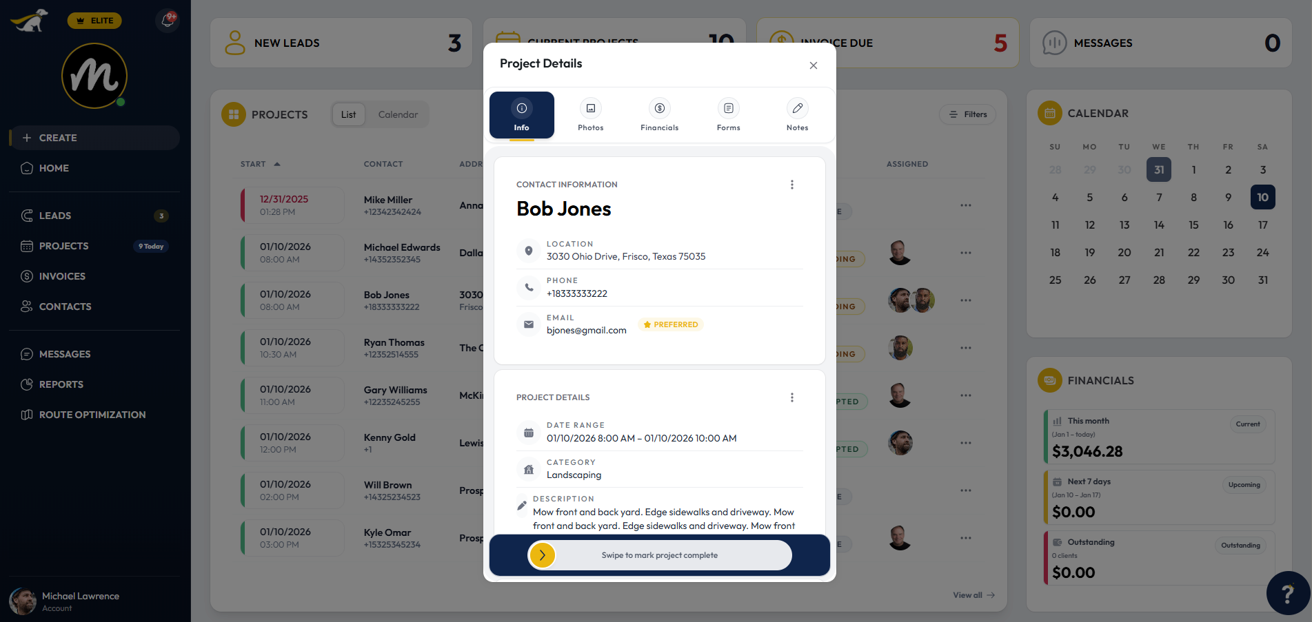 Lead Dog’s project management tools give you a clear, organized view of every job in progress—all from your phone or tablet. No more scrambling through texts, emails, and spreadsheets to track what’s going on. With everything in one place—schedules, notes, photos, updates—you’ll know exactly where each project stands, what needs to happen next, and who’s responsible for what. It's like having a jobsite foreman in your pocket.